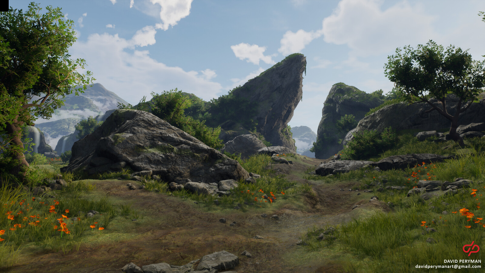 The Waterfalls are from the UE4 Asset Store, named 'Waterfall Tool by James Stone'